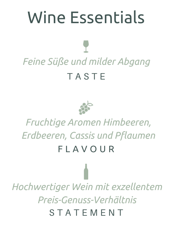 Am Gaumen überrascht dieser Wein mit feinen Tanninen und einer verführerischen Vielfalt an Geschmacksnuancen. Noten von Mandeln, Cassis, Erdbeeren, Pfeffer, Nüssen und Gewürzen umschmeicheln deinen Gaumen und sorgen für ein unvergessliches Geschmackserlebnis. Der Wein präsentiert sich saftig, mit einer feinen Süße und einem milden Abgang, der dich zum nächsten Schluck einlädt.